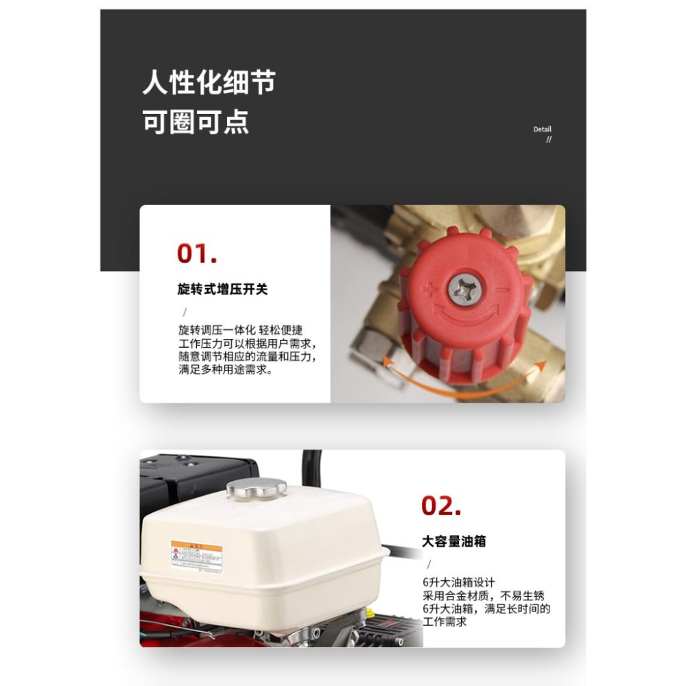 原裝本田汽油超高壓清洗機商用洗車機噴砂除鏽剝樹皮環衛道路清洗 老吳網路拍賣 統一編號 88534108 🧽四行程高壓清洗機 外銷日本●大流量高壓出水●同級CP值首選 中國製造 HONDA本田 13HP 汽油引擎高壓清洗機 【產品規格】 馬力 13HP引擎 流量 25L(公升/分) 最高水壓 350BAR 重量 60kg 油箱容量 6L 機油箱容量 0.8L 自動停機 有 【產品配件】 高壓出水管10m1條、高壓槍桿(長槍)、螺旋噴頭、進水管、濾水器1個 可以加購 【產品特色】 大型車輪:採用大型灌風輪,容易移動與固定 結構堅固:陶瓷柱塞、鍛造汽缸,結構堅固 強制冷卻:自動將多餘的水導入汽缸冷卻,加強使用壽命 自動調壓閥:材質堅固、壓力穩定 省油裝置:利用噴槍控制引擎省油器,不運轉時自動轉為怠速,節省能源 柱塞式幫浦:採用鋁合金曲軸箱,精密鍛造曲軸。 柱塞套:採用高密度陶瓷柱塞,高硬度耐磨耗,可長時間使用。 迫緊:特殊設計迫緊,可加強使用壽命。 可調式壓力閥:壓力穩定,節省能源。 【四大優勢】 1、適應各種不同的清潔任務 2、適合洗車及其他各種清洗專業用途 3、省油裝置設計的引擎提供可靠動力保障 4、5種高壓噴嘴可供快速更換 0度.15度.25度.40度.84度