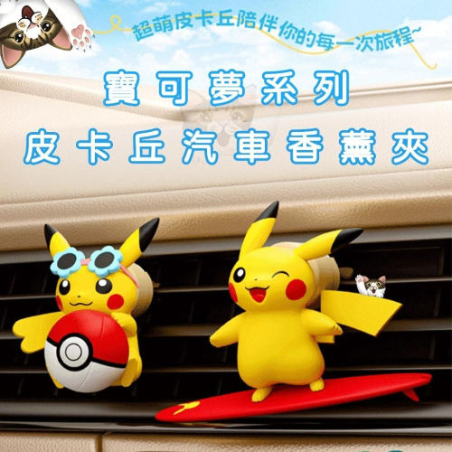 【喵喵屋|24H出貨】寶可夢 皮卡丘汽 車香薰夾 風口香薰 車載香薰 汽車專用 公仔 汽車香氛 夏日清香 衝浪皮卡丘