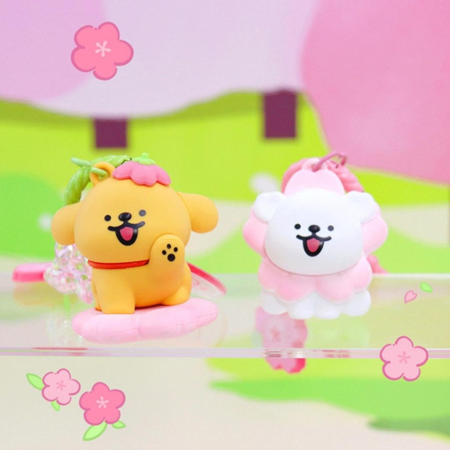 【喵喵屋|24H出貨】線條小狗 春日櫻花會 鑰匙圈 春天系列 鑰匙扣 小白 小黃 春日系列 掛件 可愛小狗 線條狗