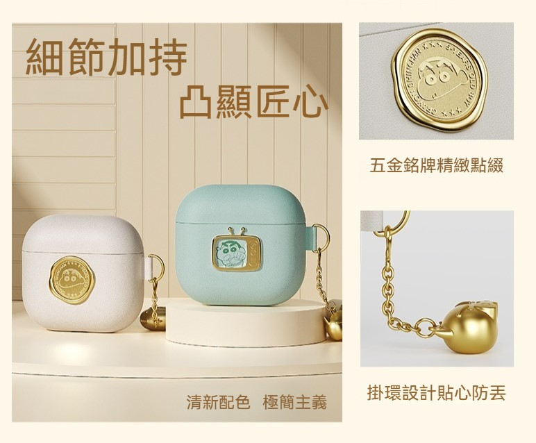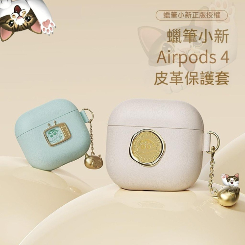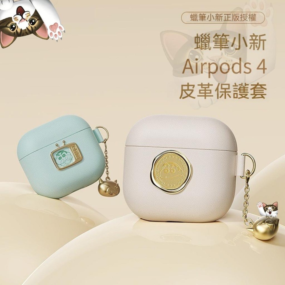 【喵喵屋|24H出貨】蠟筆小新 Airpods 4 皮革耳機殼 簡約造型 耳機套 保護殼 經典印章