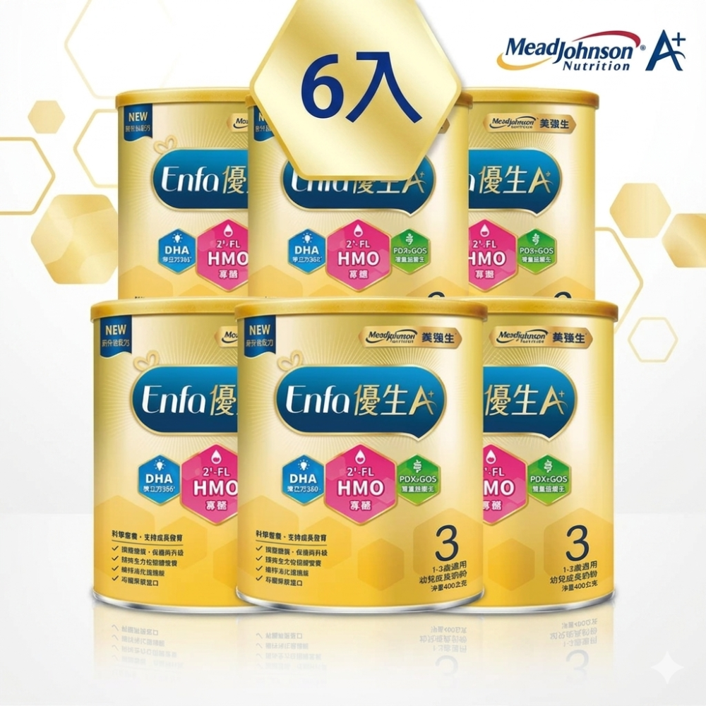 商品品名:Enfa A+ 優生3 1-3歲適用 幼兒成長配方(HMO新配方)400g*6罐/箱