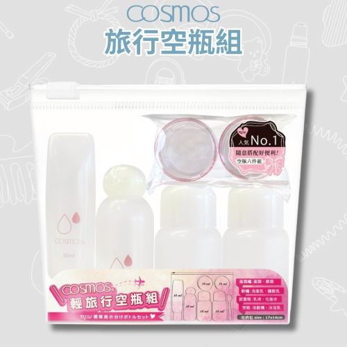 ★開發票 cosmos 旅行空瓶組 附收納袋 (T36228) 分裝 方便攜帶 內含軟管 面霜罐 壓瓶 噴瓶 旅行