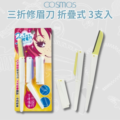 ★開發票 cosmos 三折修眉刀 折疊式 3支入 (R38111)