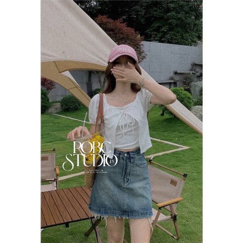 韓版泡泡袖短上衣 ( 二件套 ).ᐟ.ᐟ