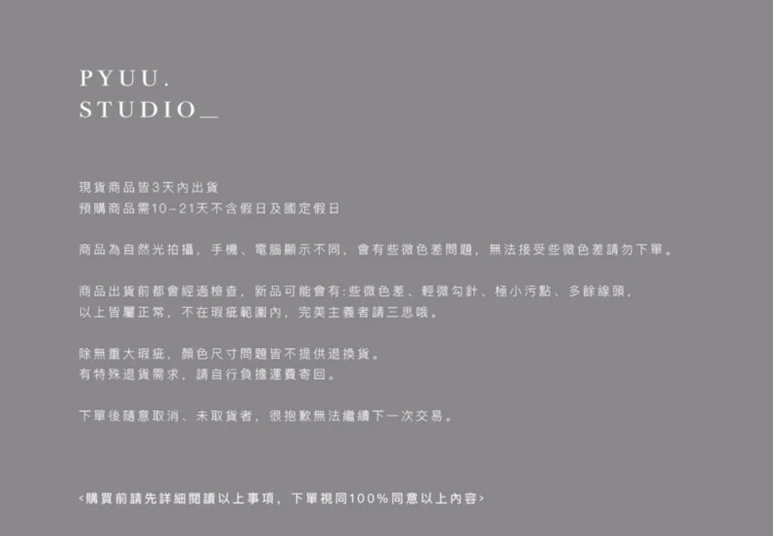 更多新品消息、優惠活動在instagram:@pyuu.studio