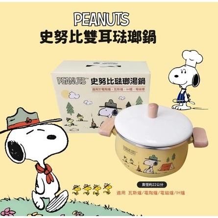 全新 SNOOPY 史努比 雙耳琺瑯鍋 22cm 琺瑯湯鍋 櫸木握把 適用 電陶爐 瓦斯爐 iH爐 電磁爐