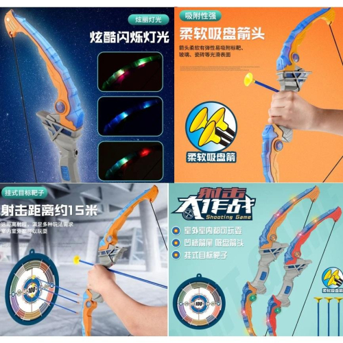全新 玩具弓 閃爍燈光 射擊距離15米 掛式目標靶子 柔軟吸盤箭 超大號 兒童弓箭 套裝 擊箭 休閑競技 傳統弓箭