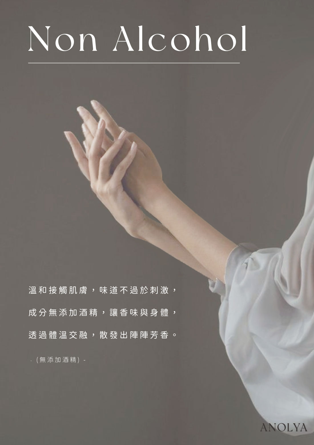 - 溫和接觸肌膚,味道不過於刺激,成分無添加酒精,讓香味與身體透過體溫散發出陣陣清香。