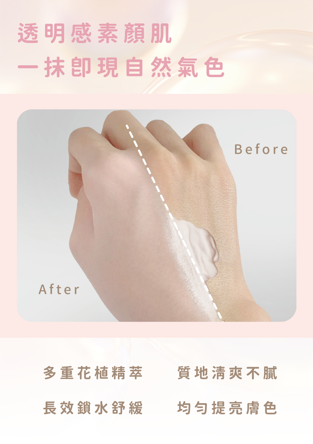 ・提亮膚色、修飾暗沉,使膚色粉嫩均勻