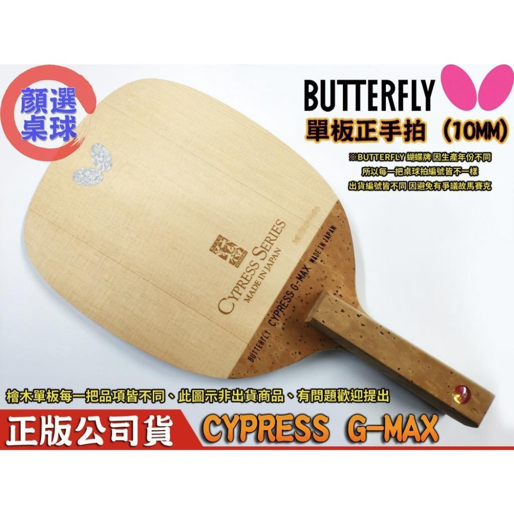 顏同學 顏選桌球 Butterfly 蝴蝶牌 桌球拍 乒乓球拍 CYPRESS G-MAX 日直 直板 單板 單檜 檜單