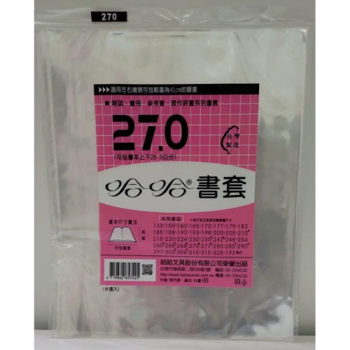 27.0 ( 6張入):適用左右攤開可包範圍為 41 cm 的圖書(可包書本上下 26.9 cm )。