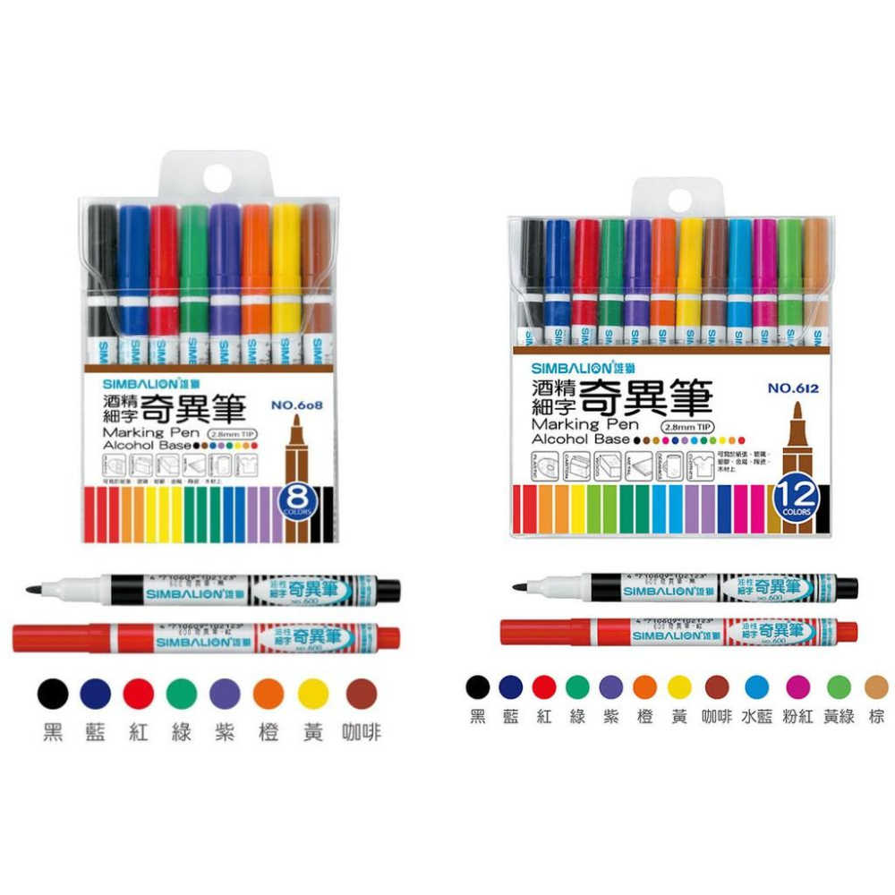 雄獅 奇異筆 NO.608 八色、NO.612 十二色 油性、快乾、油性筆、彩色、簽名筆 600 SIMBALION