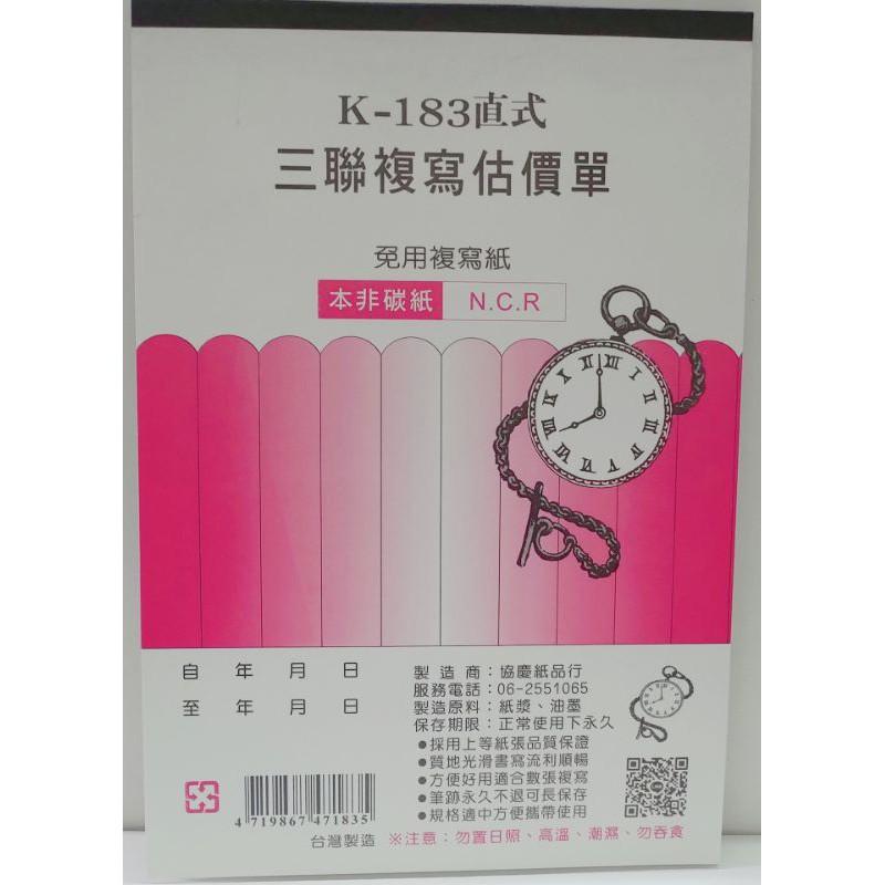 象球牌 K- 182 二聯直式、183 三聯直式 非碳紙 複寫 估價單