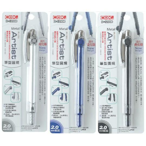COX 三燕 2.1 進化版_筆型圓規 D-1200B ( 2.0mm 鉛芯 ) 圓規 顏色隨機出