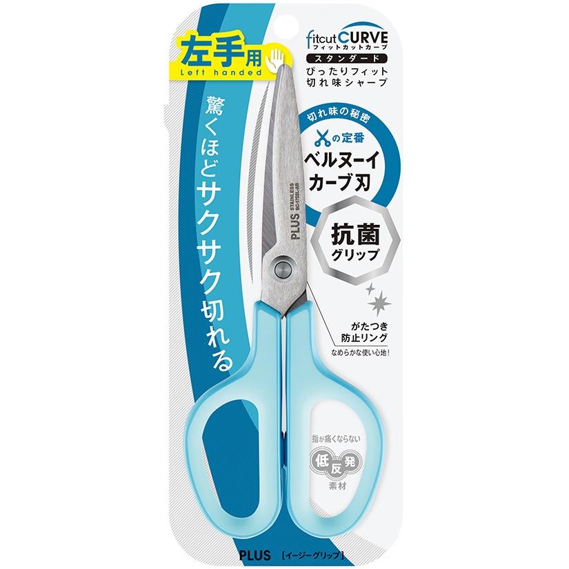 PLUS SC-175S-AB 抗菌型弧線剪刀 ( 藍 ) ( 左手剪 ) 普樂士 35-738 抗菌型 弧線 剪刀