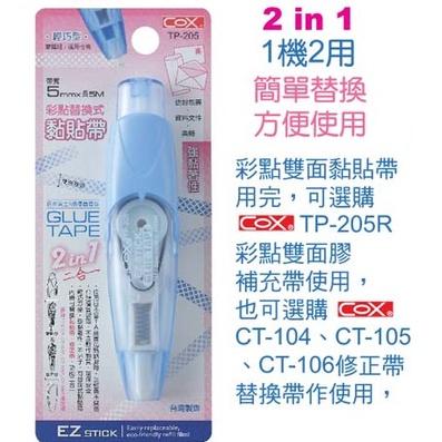 COX TP-205 彩點替換式雙面黏貼帶 雙面膠 豆豆貼 雙面黏貼帶 三燕 按鍵式
