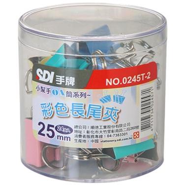 SDI 0245T-2 彩色長尾夾 25mm 筒裝 小幫手 OA筒 手牌 0245 彩色 長尾夾
