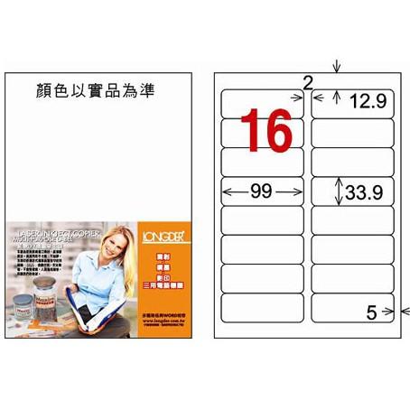 龍德 LD-811-W-C A4 電腦標籤 ( 33.9 * 99 mm) 白色 20張入 16格 三用電腦標