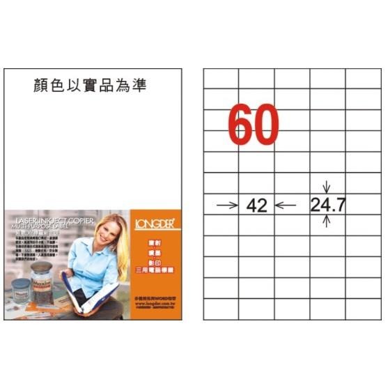 龍德 LD-839-W-C A4 電腦標籤 ( 24.7 * 42 mm ) 白色 60格 20張入 標籤 貼紙