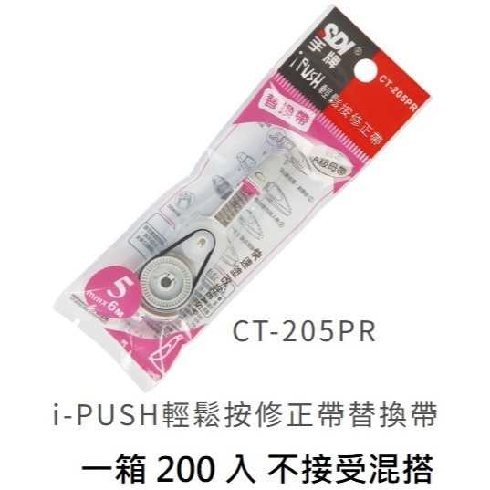 SDI CT-205PR 修正內帶 粉 一箱 i-PUSH 輕鬆按修正帶替換帶 手牌 內帶 ( 不混搭 )