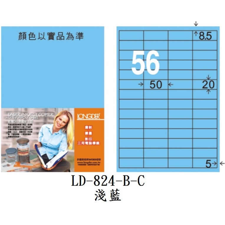 龍德 LD-824-B-C A4 電腦標籤 淺藍 56格 三用 標籤 貼紙 LONGDER
