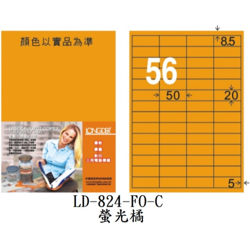 龍德 LD-824-FO-C 電腦標籤 螢光橘 56格 標籤 貼紙 雷射 影印 專用 螢光 LONGDER