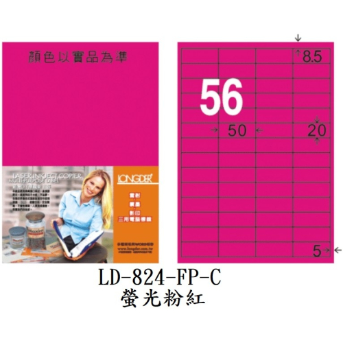 龍德 LD-824-FP-C 電腦標籤 螢光粉紅 56格 標籤 貼紙 雷射 影印 專用 螢光 LONGDER