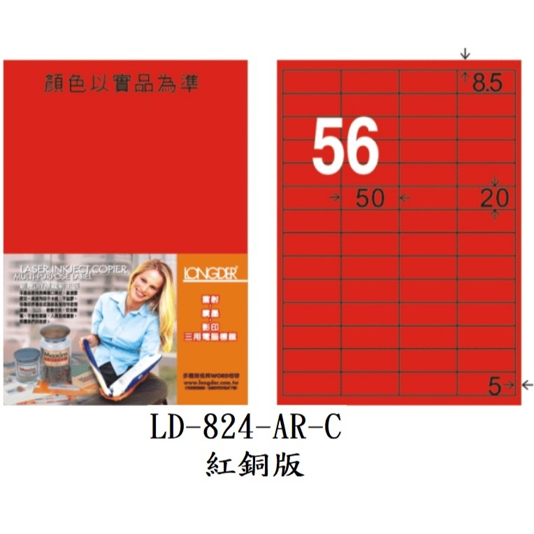 龍德 LD-824-AR-C A4 電腦標籤 紅銅版 56格 雷射 影印 標籤 貼紙 LONGDER