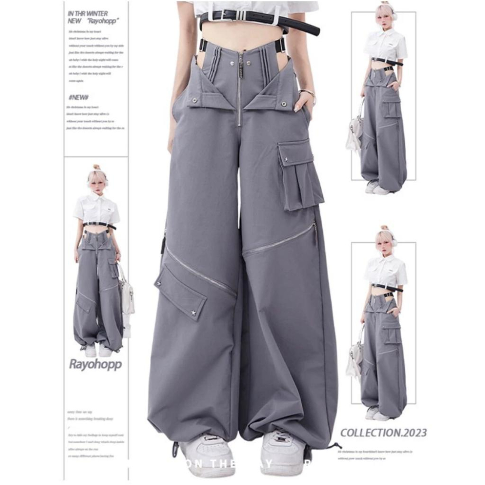 RM 預購 灰色 工裝褲 夏季 原創 復古 多拉鍊 口袋 兩穿 設計 抽繩 休閒褲 日常