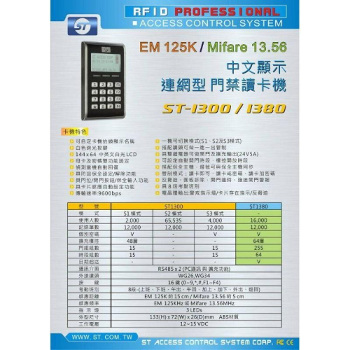 (門禁家) 含稅 飛強 St1300 門禁讀卡機 感應卡 門禁感應卡機 密碼機