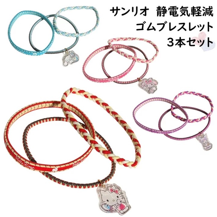 日本製🇯🇵防靜電橡膠手環 橡皮筋 冬季 靜電 三麗鷗 吊飾