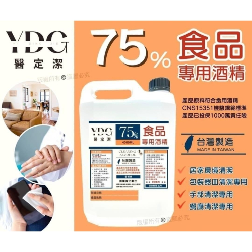 品名:醫定潔75%食品專用酒精