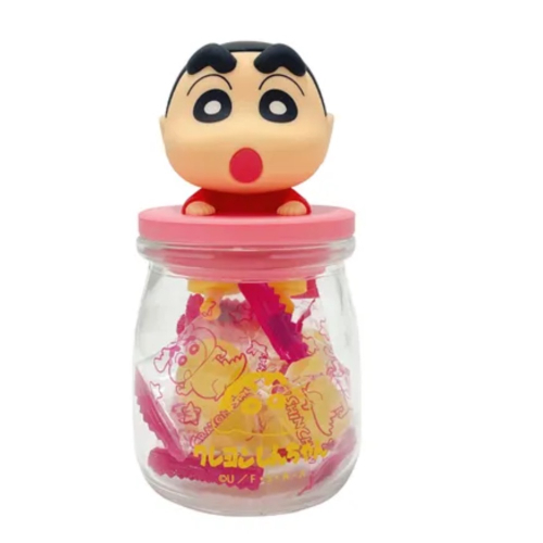 這是裝滿糖果的瓶子,上面印著蠟筆小新的主角野原新之介的吉祥物。含有 6 片。吃完糖果後,瓶腳就會露出來,看起來更可愛。尺寸約14×6.8×6.8cm