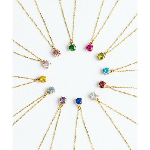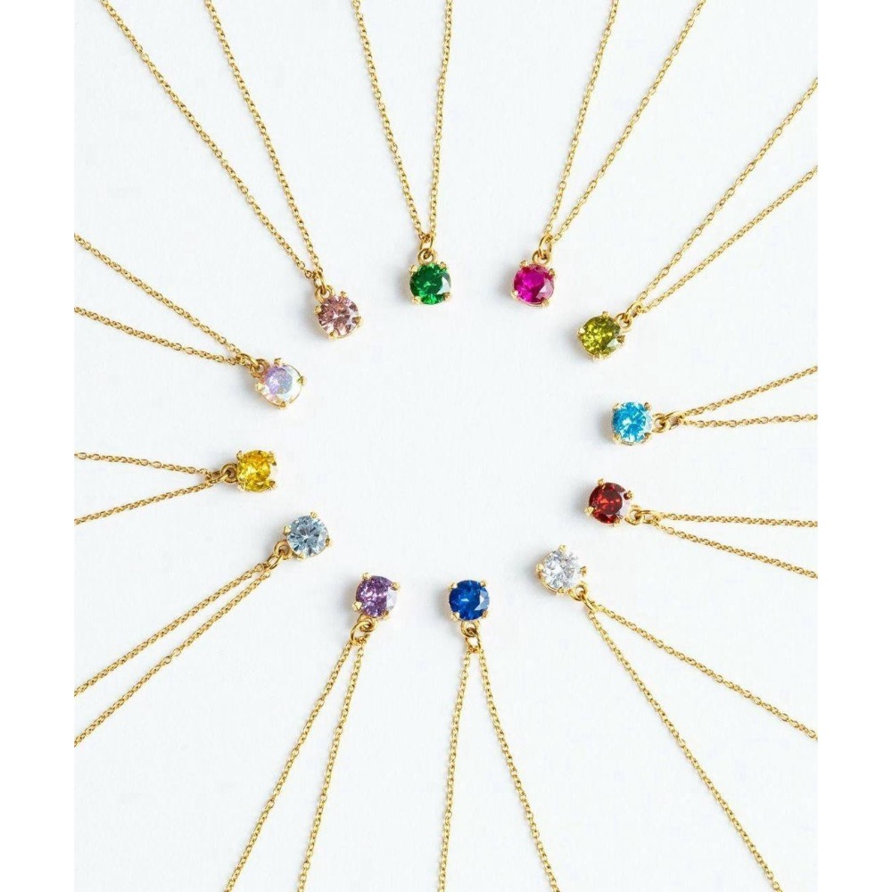 這款項鍊以誕生石為靈感,採用單顆寶石設計