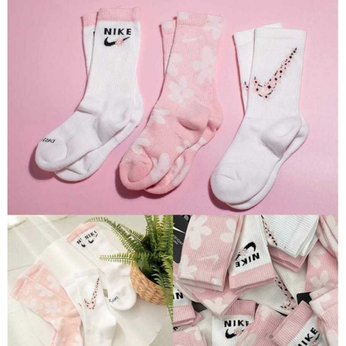 限時限量 台灣公司貨 Nike Everyday 粉白櫻花長筒襪三雙組 京京國際代購 @489jceqr