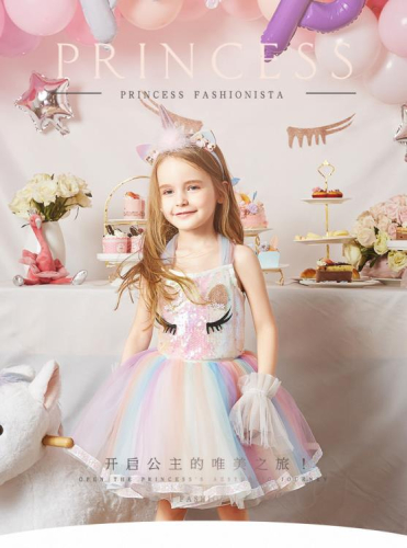 寶貝童裝女童獨角獸亮片上衣ins童裝兒童彩虹網紗裙套裝小寶寶洋氣公主裙