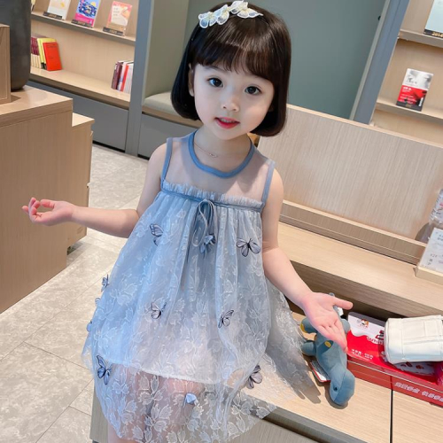寶貝童裝女童夏裝蕾絲無袖連身裙兒童裙子洋裝寶寶夏季洋氣立體蝴蝶公主裙小童