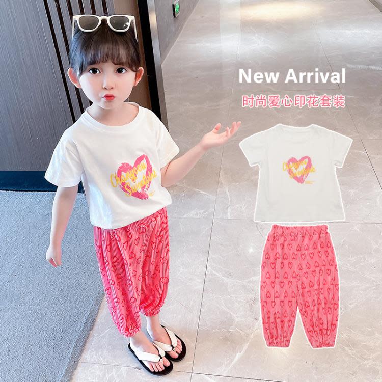 寶貝童裝女童夏裝套裝網紅女寶寶夏季正韓洋氣時髦愛心T恤褲兒童夏款3