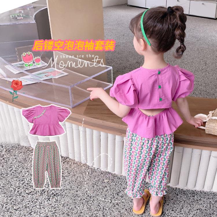 寶貝童裝女童夏裝套裝2023新款女寶寶洋氣時髦夏季二件套兒童夏款衣服小童