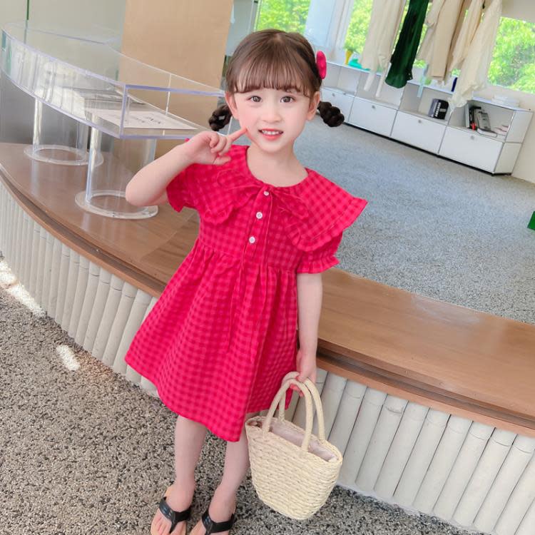 寶貝童裝女童夏裝連身裙女寶寶夏季正韓洋氣時髦娃娃領披肩短袖裙子洋裝兒童夏