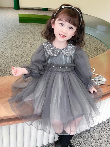 寶貝童裝Next balaba女童連身裙2023春秋新款兒童洋氣亮片時髦網紗連身裙
