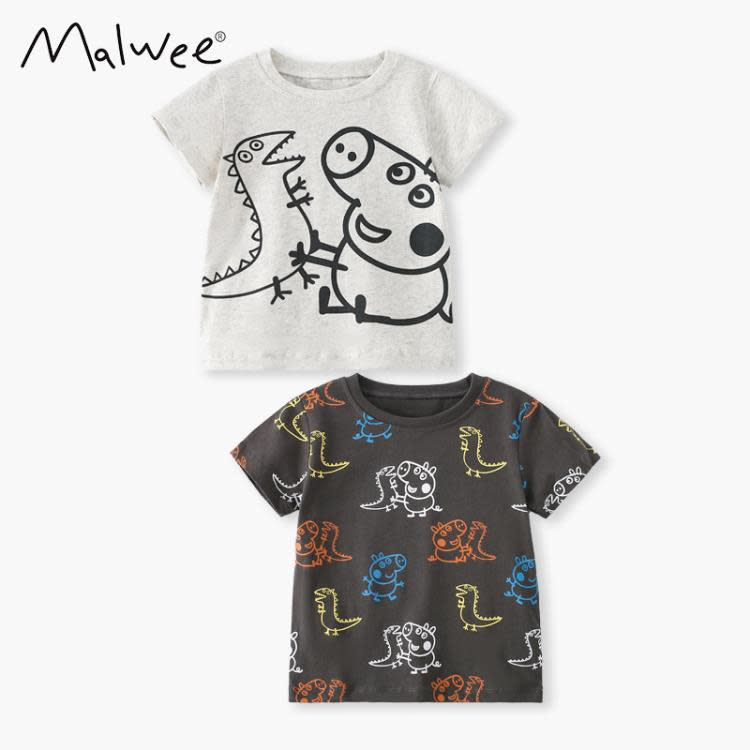 寶貝童裝外貿童裝卡通恐龍男童汗衫夏季兒童純棉打底衫小寶寶圓領短袖t恤