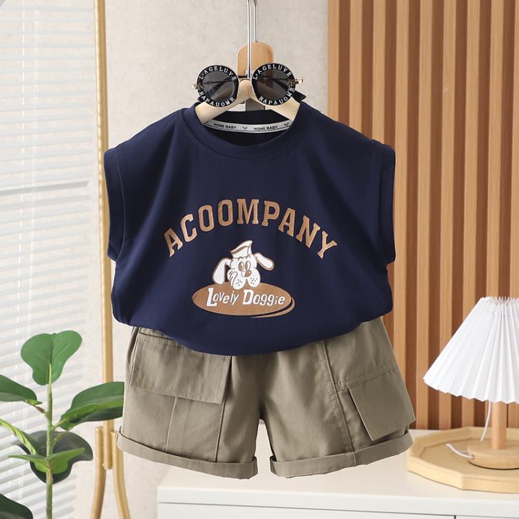 寶貝童裝巴-拉巴-拉男童童裝純棉無袖套裝女寶寶夏裝二件套嬰幼兒童新款夏
