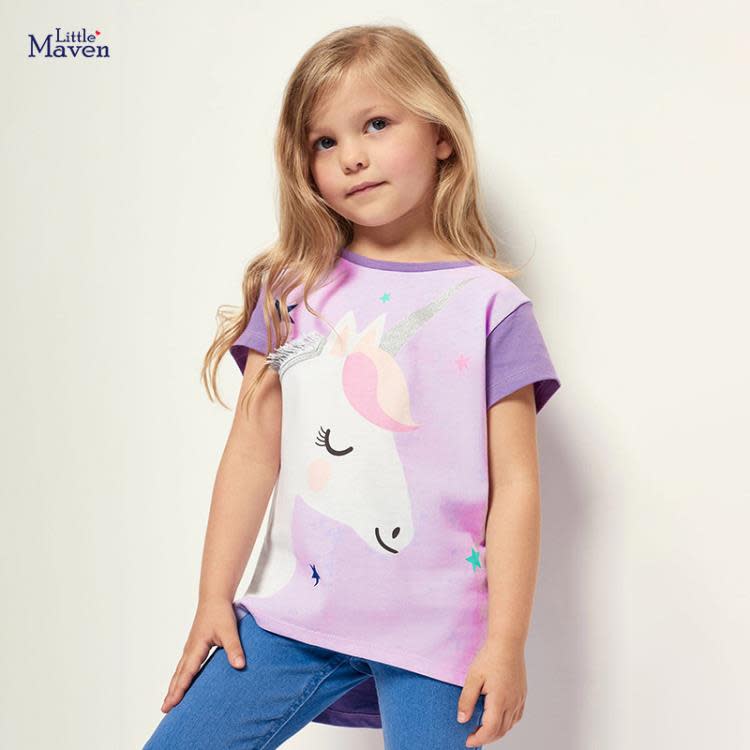 寶貝童裝2023兒童T恤夏季新款歐美童裝C純棉可愛獨角獸短袖女童t恤潮流