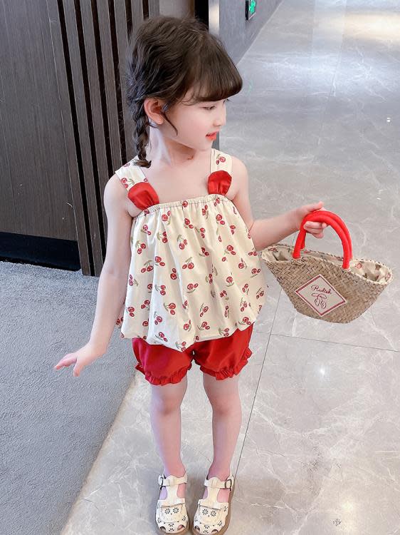 寶貝童裝女童套裝夏款兒童夏季吊帶二件套女寶寶洋氣時髦夏裝2小女孩衣服3