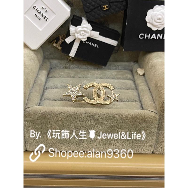 CHANEL 香奈兒 超美 淡金色 經典 五角星 雙C LOGO 二手 造型 戒指
