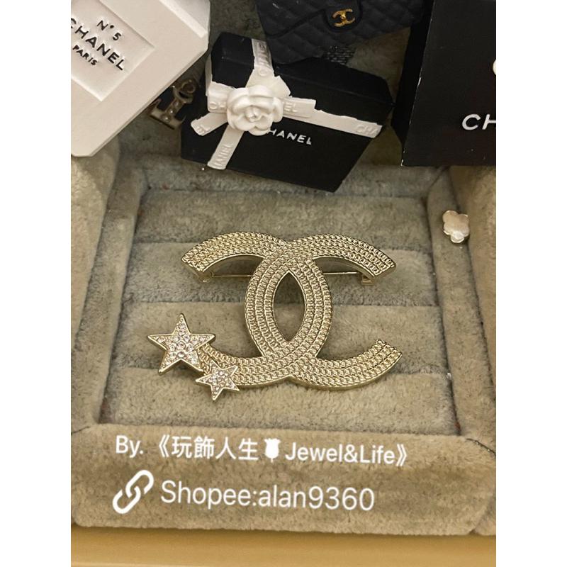 CHANEL 香奈兒 基本款 經典 流星系列 素描雙C 大LOGO 淡金色 二手 造型 胸針 別針