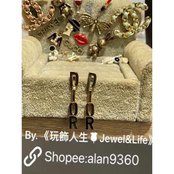DIOR 簡約 素面 水鑽 亮金色 字母 流蘇 二手 造型 耳環