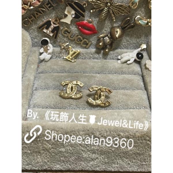 CHANEL 經典 日常生活 素面字母 金色 迷你 二手 雙C LOGO 造型 耳環