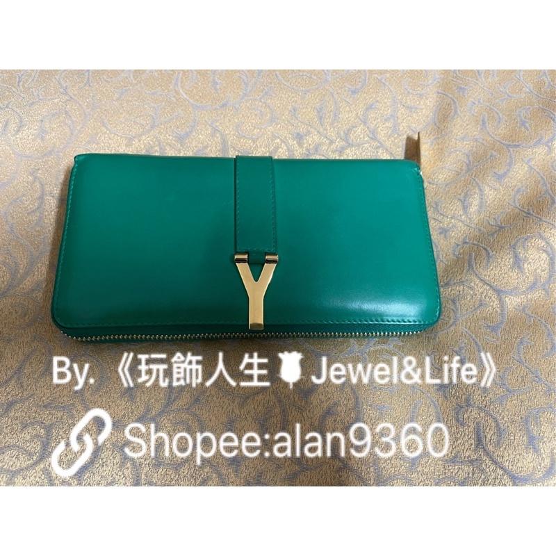 Saint Laurent Paris YSL 經典 二手 復古 Y 金色 竹子綠 ㄇ型 長夾